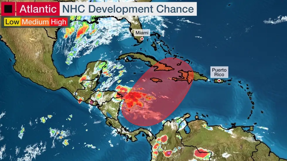Où cela pourrait-il se diriger : On s’attend à ce que le système soit attiré vers le nord-est en direction de la Jamaïque, de l’est de Cuba et d’Hispaniola d’ici vendredi ou samedi, puis dans le sud-ouest de l’océan Atlantique d’ici dimanche, où il devrait se transformer en une dépression non tropicale. Y a-t-il des régions spécifiques qui devraient être particulièrement vigilantes?