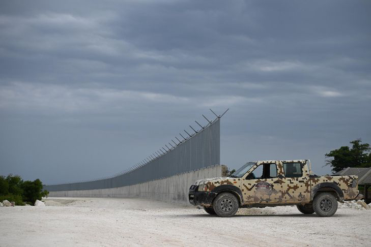 Le mur frontalier construit entre la République dominicaine et Haïti, le 15 mai 2024, à Pedernales / Federico PARRA / AFP.