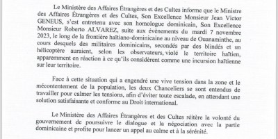 Haiti: “Incidents Frontaliers Haïti-Dominicaine : Dialogues pour Désamorcer la Crise”